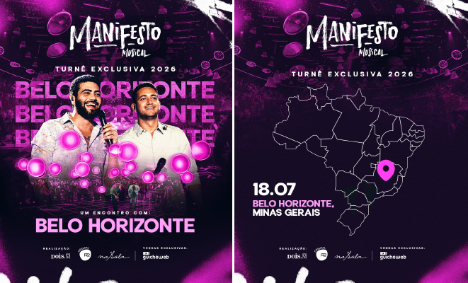 A primeira dupla sertaneja a esgotar ingressos no Maracanã/RJ, Henrique & Juliano se apresentaram para mais de 60 mil pessoas, no dia 03 de Janeiro, no maior estádio do país. O show também marcou o início da turnê Manifesto Musical, anunciando 11 cidades confirmadas em 2026. Entre elas, Belo Horizonte, capital mineira, que receberá o evento no dia 18 de Julho, no Estádio Governador Magalhães Pinto (Mineirão). Os ingressos serão vendidos a partir do dia 19 de Janeiro às 12h, através do site https://www.guicheweb.com.br/